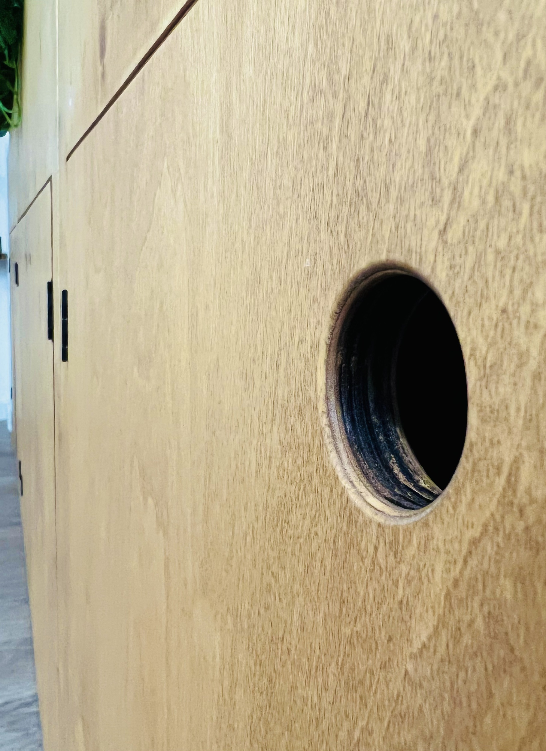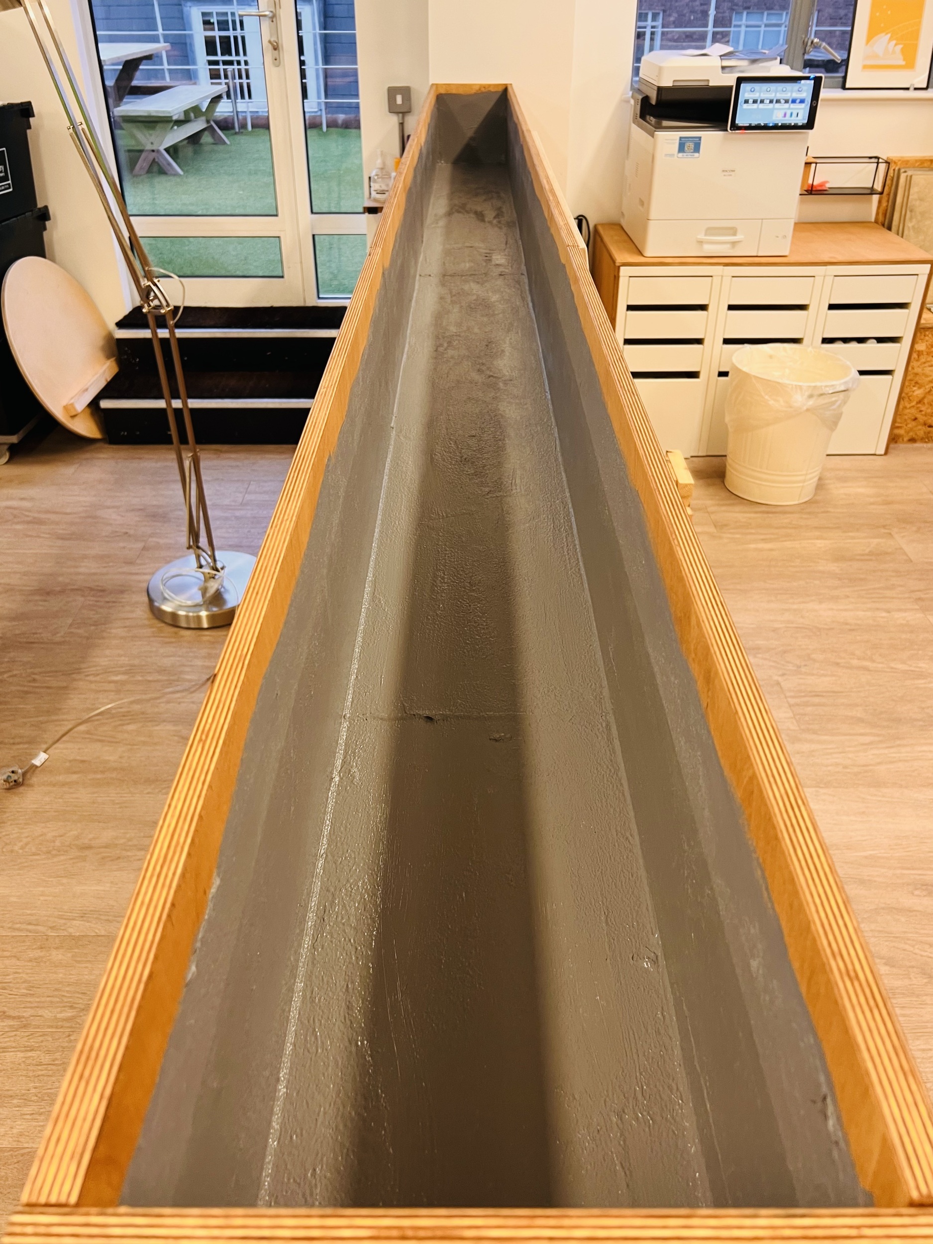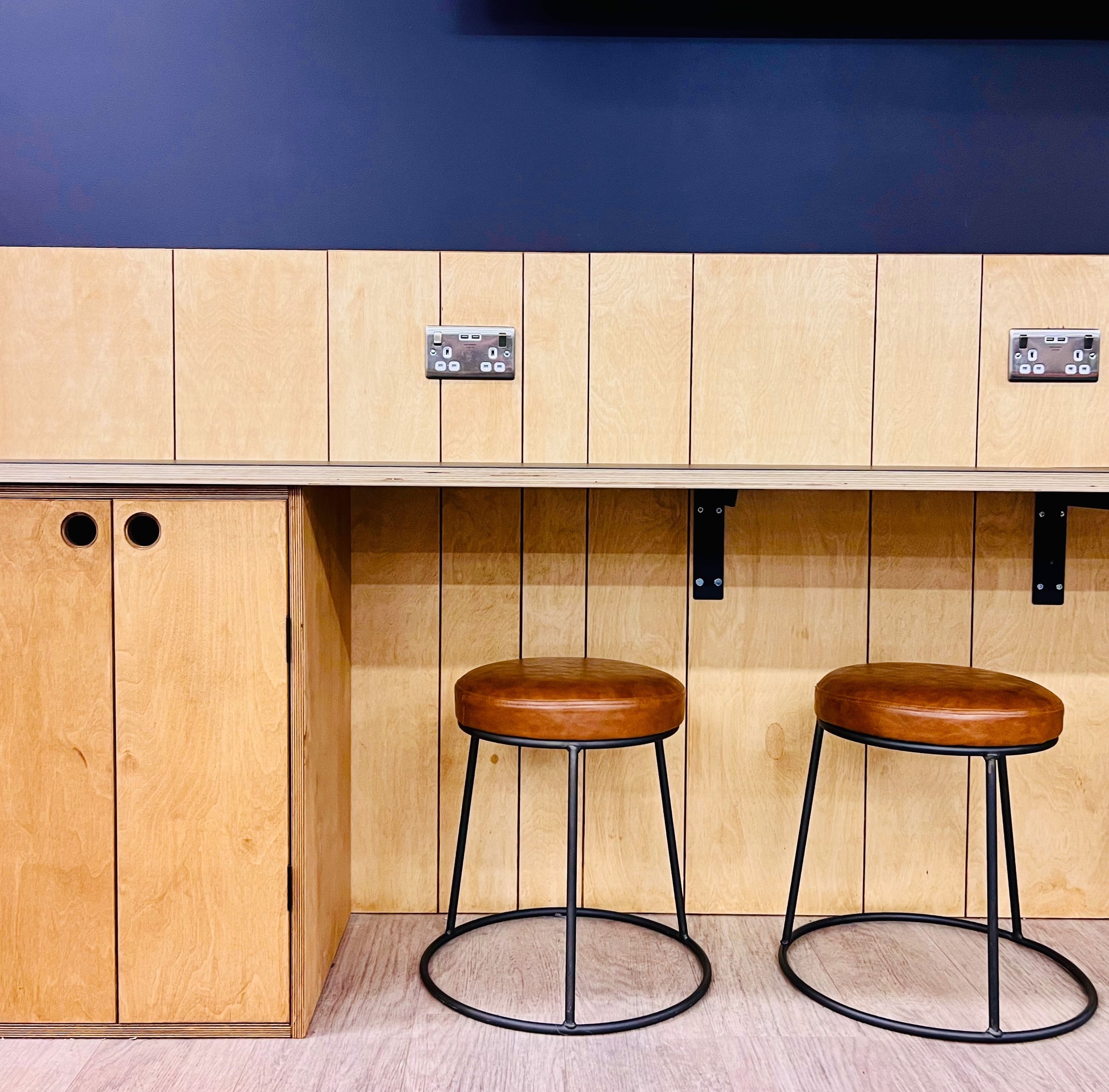 In addition Emma used a tall version o the same style unit just on the other side of this space to create a standing work bench for up to 5 people that also divided seating and games spaces as well as providing storage and a planter to bring in much needed greenery.