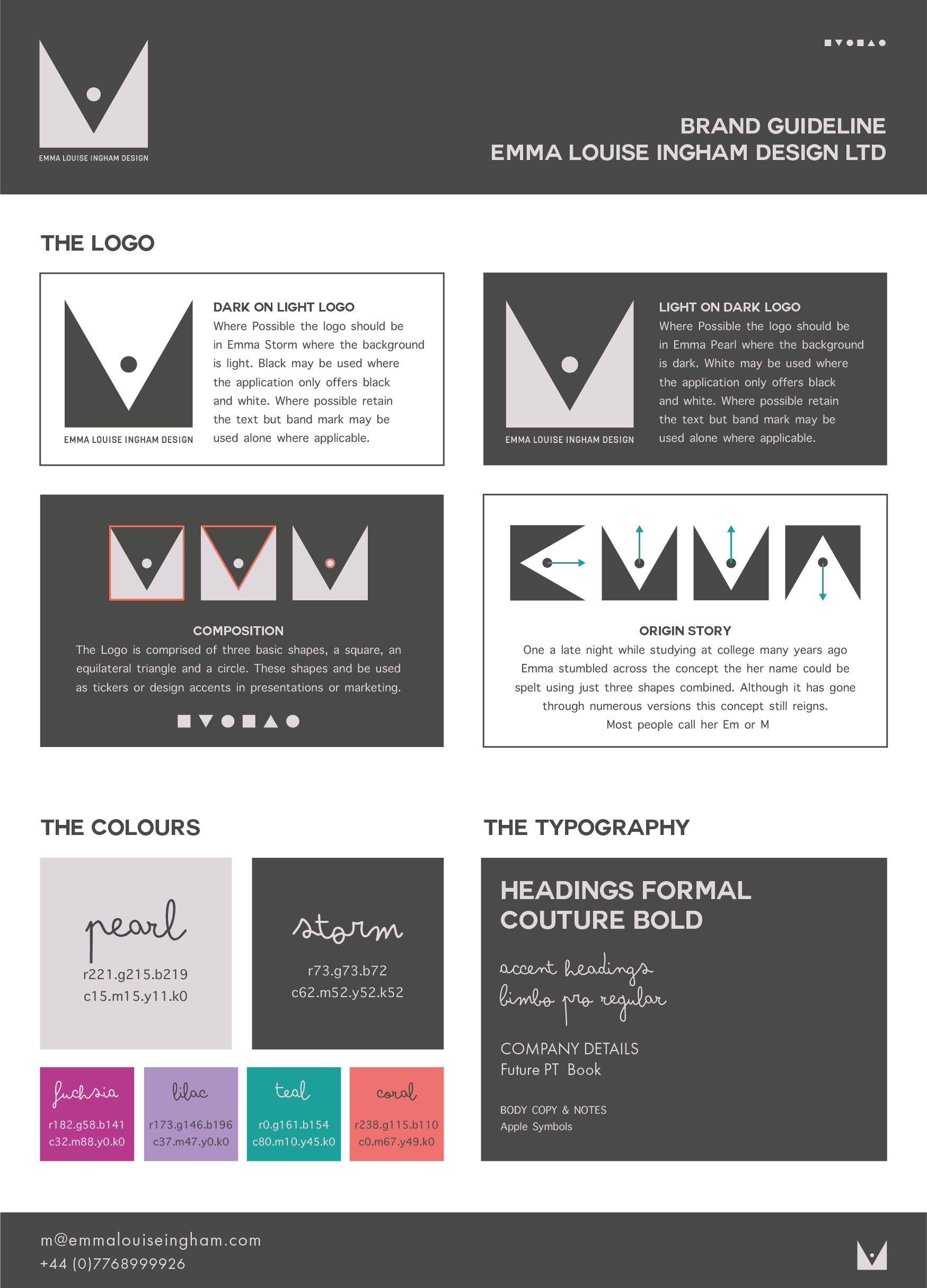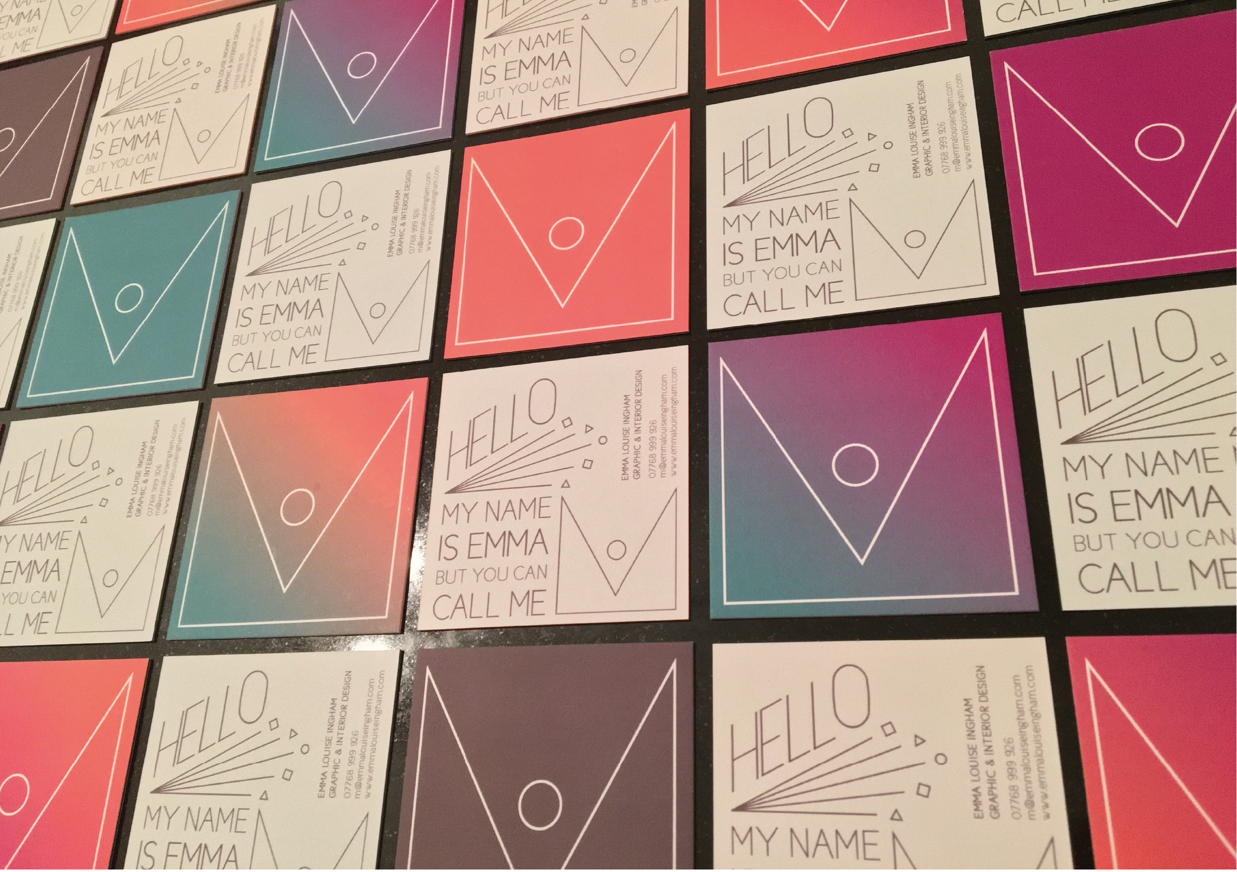 My very own brand was developed primarily through my love of the three basic shapes, the foundations of design; the circle, the square and the triangle. With my name being Emma most people shorten my name to Em or M as in James Bond so when I came up with this form the M side of the icon made the most sense to use.