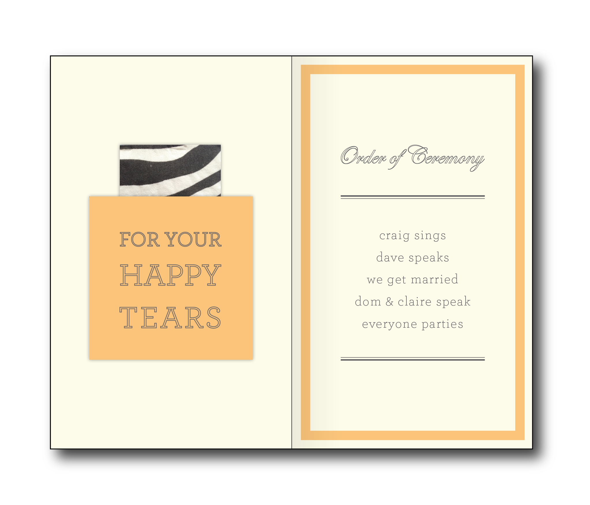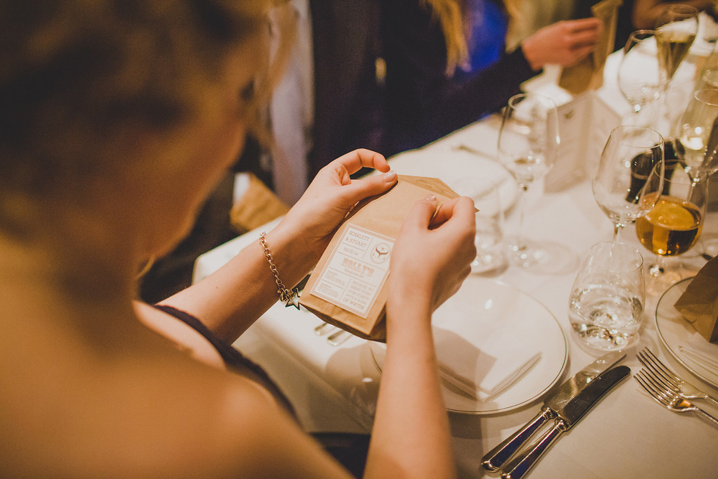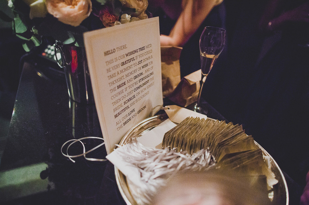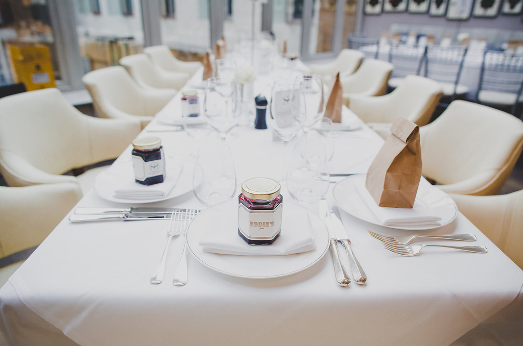 Scarlett and Stuart were holding their wedding at the beautiful Dover Street Arts Club and wanted fully bespoke stationery befitting the elegant venue yet reflective of their playful personalities. Their collection, which was all hand made, consisted of; Orders of service, placement cards, individually named jam jars and hangover kits, wishing tree labels and thank you cards.